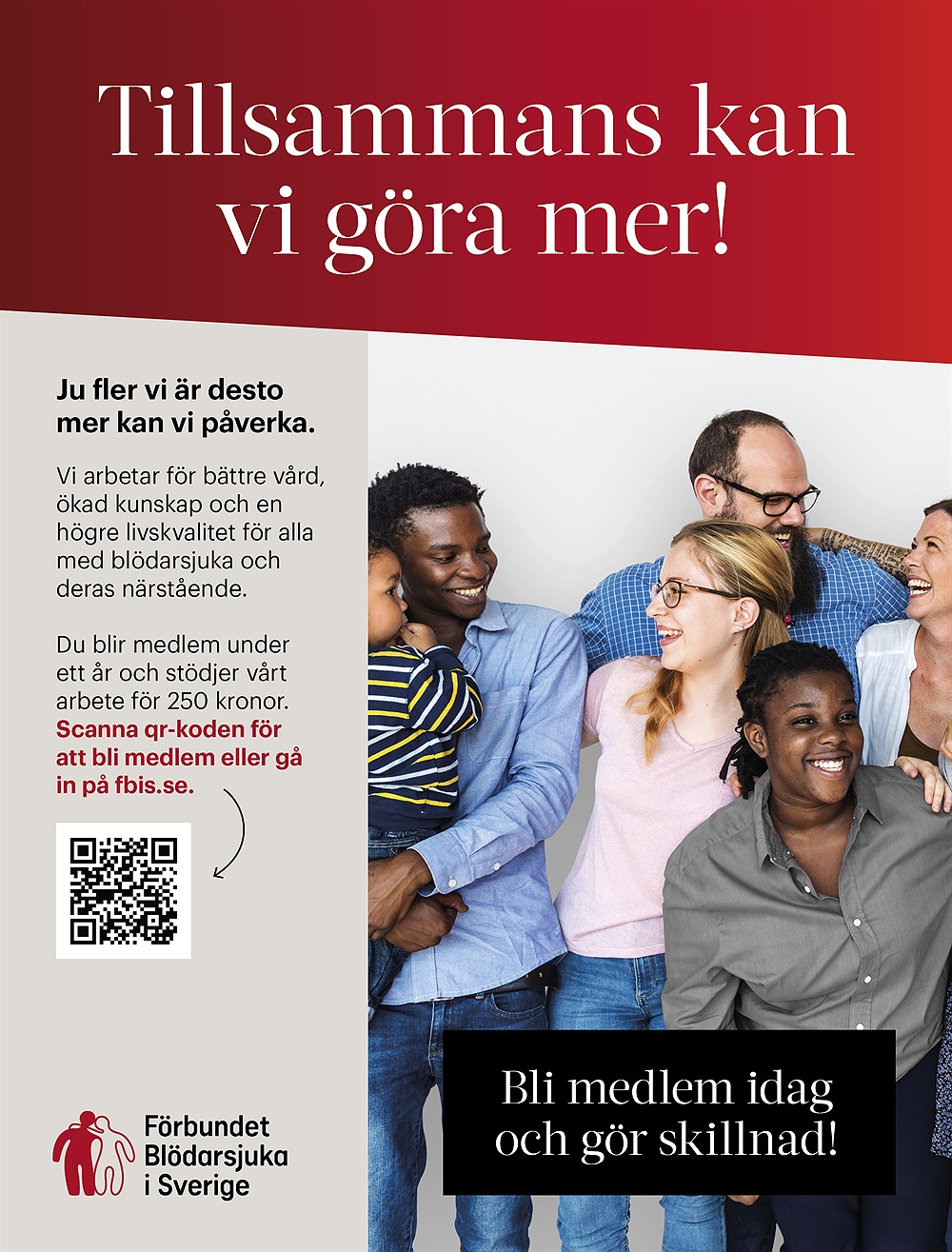 Som förbund arbetar vi för att ta tillvara blödarsjukas och deras närståendes intressen i samhället och sprida kunskap om blödarsjuka.