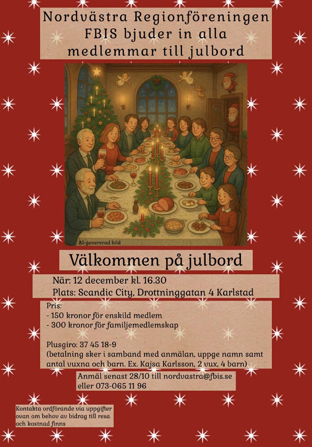 FBIS Nordvästra bjuder in alla medlemmar till julbord